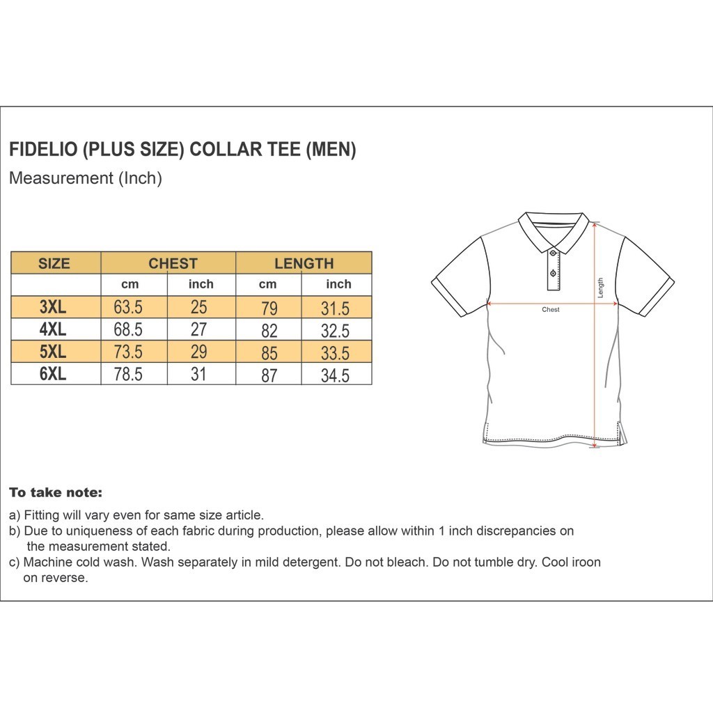 Welcome to FIDELIO our store! FIDELIO's polo shirts are daily essentials. On top of that, its design is made to suit both casual and semi-formal days. The design is always trendy for the dapper gentleman. One great aspect of polo shirt is that it can be paired with any shorts or pants, yet maintaining that sporty and stylish look. With the premium cotton material, you can wear it anywhere comfortably while maintaining the smart look since the moment you leave your wardrobe. Polo is about the aspirational lifestyle of the sporty person, on and off the field. - David Lauren ➕ PLUS Size ✅ Cotton Blended ✅ Comfortable ✅ Breathable ✅ 3XL, 4XL, 5XL & 6XL 🚛 Ready stock, ship in 2 days ⚠️ Kindly refer to size chart for measurement guidance ⚠️ Machine wash warm. Do not bleach. ⚠️ Refer to instructions of care label for wash guidance ⚠️ Exact colour of the product may vary depending on the display settings of your device.